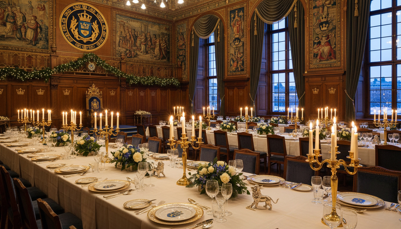 ”Nobelbanketten genomfördes enligt plan med kungafamilj, pristagare och inbjudna gäster på plats – fokus låg på vetenskaplig prestation och firande.”